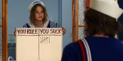 Am 30. Juni, als Robin Eis verkaufte, traf sie Dustin Henderson, der Steve sehen wollte. Sie beobachtete, wie Steve und Dustin sich mit einem besonderen Händedruck begrüßten, was sie dazu veranlasste, Steve sarkastisch zu fragen, mit wie vielen Kindern er befreundet sei. Sie servierte weiter Eis, während Steve und Dustin sich unterhielten, und hörte, wie Dustin laut sagte, dass er eine geheime russische Übertragung auf Cerebro abgefangen hatte, weil Steve ihn nicht gehört hatte.